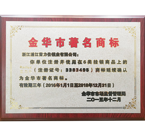 浦江雷力仕鎖業有限公司始建于1995年,是一家專業的鎖具生產商,位于全國最大的掛鎖制造中心-浦江。 公司具有強大的鎖具設計、研發、改良和制造能力,并擁有先進的設備和雄厚的技術力量、以及一支訓練有素的專業團隊。 公司專業生產50多種系列的100余種中高檔銅、鐵掛鎖, SUS304 不銹鋼掛鎖,于2015年通過了ISO9001:2015質量管理體系認證?,F有注冊和授權商標:RARLUX、JEWEL-FLOWER、TRI-CYCLE。產品暢銷非洲、中東、歐洲、墨西哥、南美等地區。依靠值得信賴的品質和完善的服務,深受海內外客戶的青睞。 “造就最卓越的品質、提供最優質的服務”是標準、是承諾、更是我們銳意進取的動力。